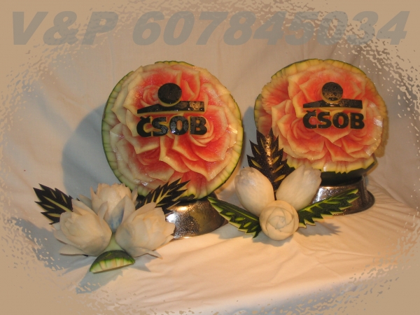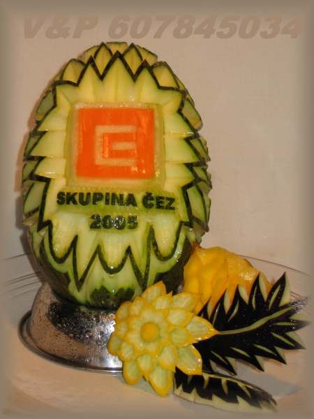 Na rautech a firemních večírcích se vyjímá logo vyřezané do melounu a jiných přírodních dobrot