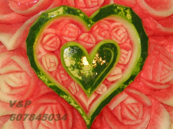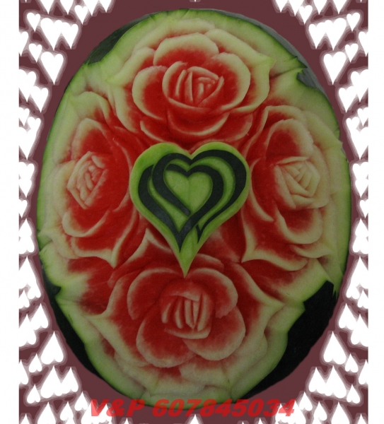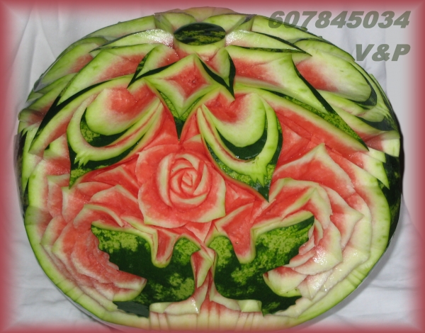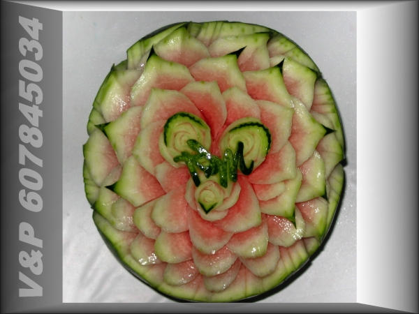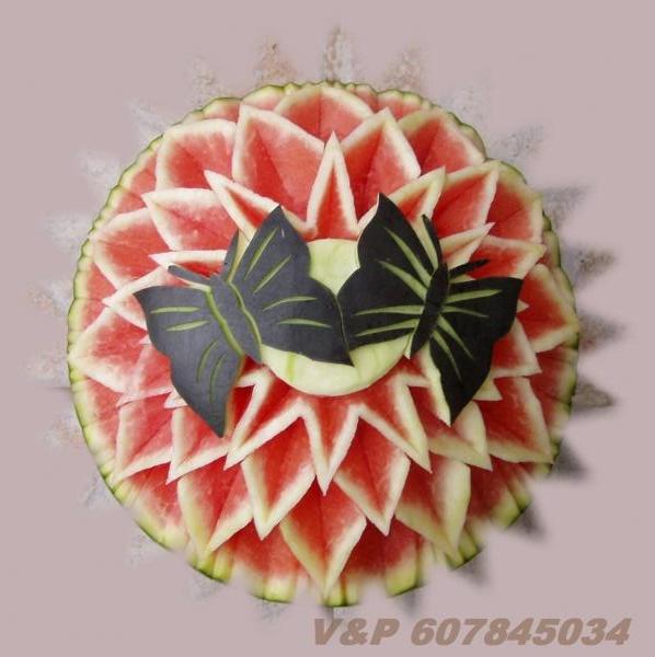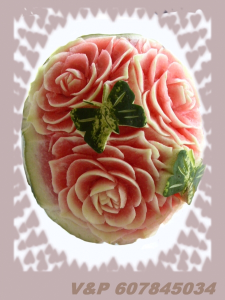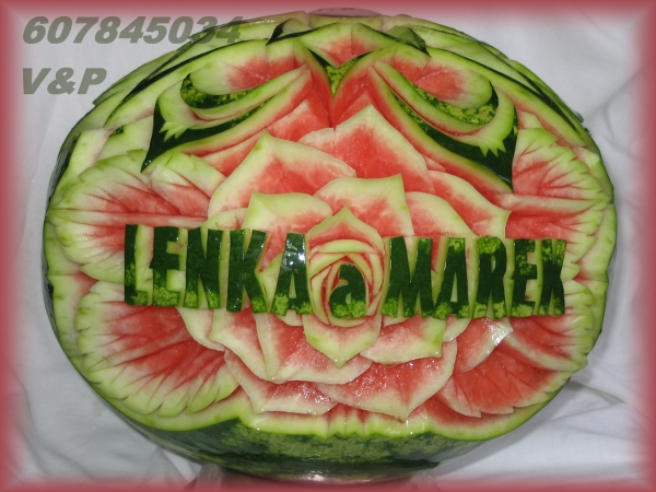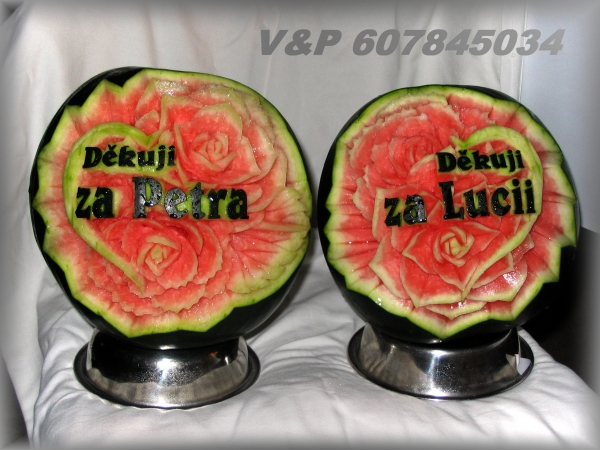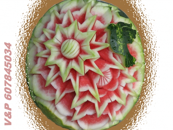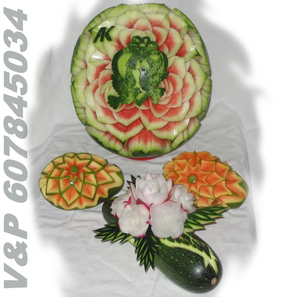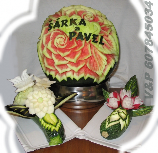 díky čerstvě vyřezaným melounům a zeleninovým květinám